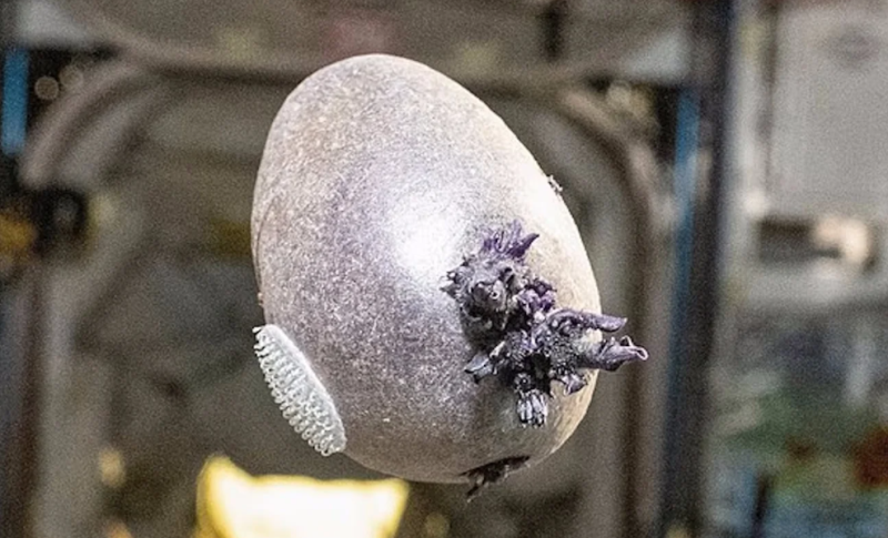 Однак Петтіт пояснив, що насправді на знімку зображена звичайна картоплина. Астронавт виростив її в рамках свого невеликого «космічного саду», використовуючи фіолетову картоплю, закріплену в спеціальному контейнері за допомогою липучки та освітлену фітолампою. Він розповів, що в умовах невагомості рослини розвиваються інакше, ніж на Землі: коріння росте в різні боки, а загальний процес розвитку відбувається значно повільніше.
